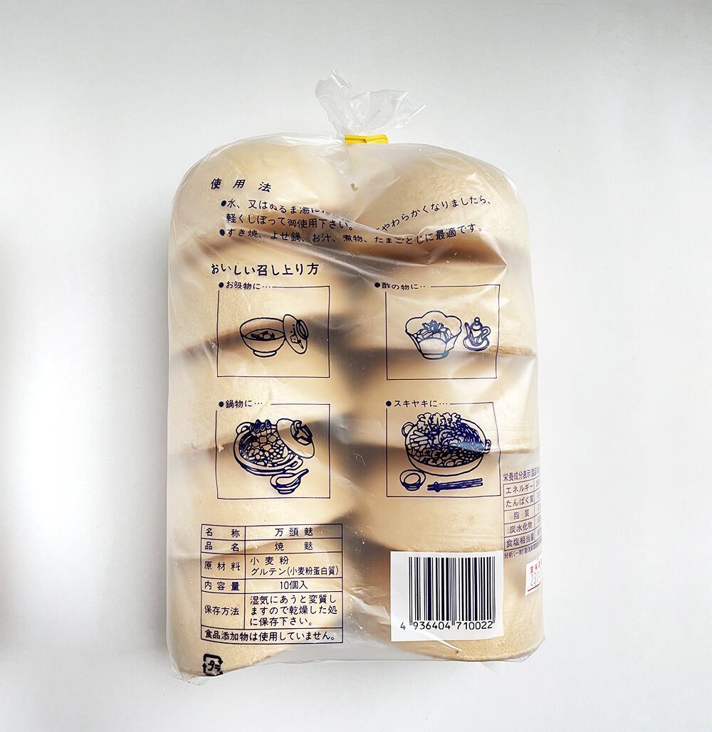 まんじゅう麩は軽く水に戻し、鍋料理や味噌汁に入れてご使用ください。丸い部分はふわふわトロトロ、平らな部分はよく焼けていてコシが楽しめます。